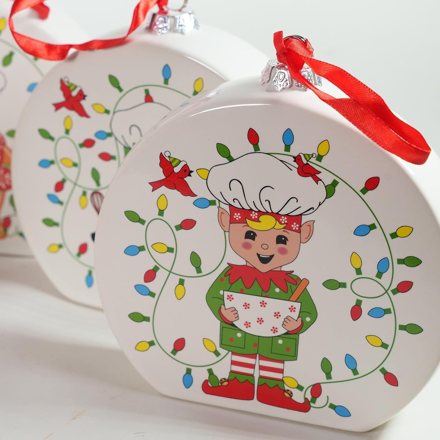 The set includes a small red satin ribbon pre-attached to each ornament—so you can hang them right away! The ribbons are sturdy enough for trees, wreaths, or hooks, but if you want to switch up the look (like using jute or green ribbon), you can easily replace them too.