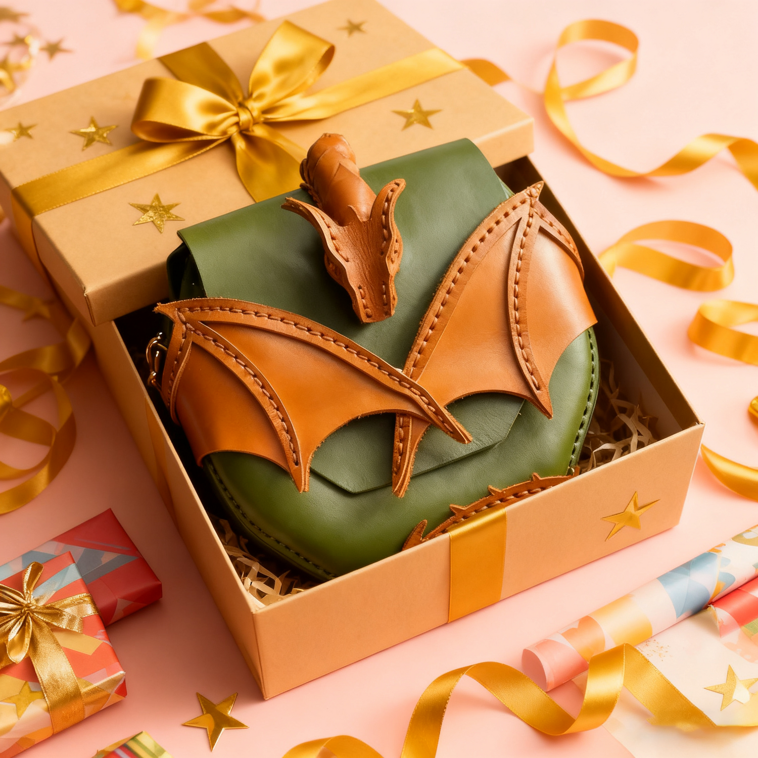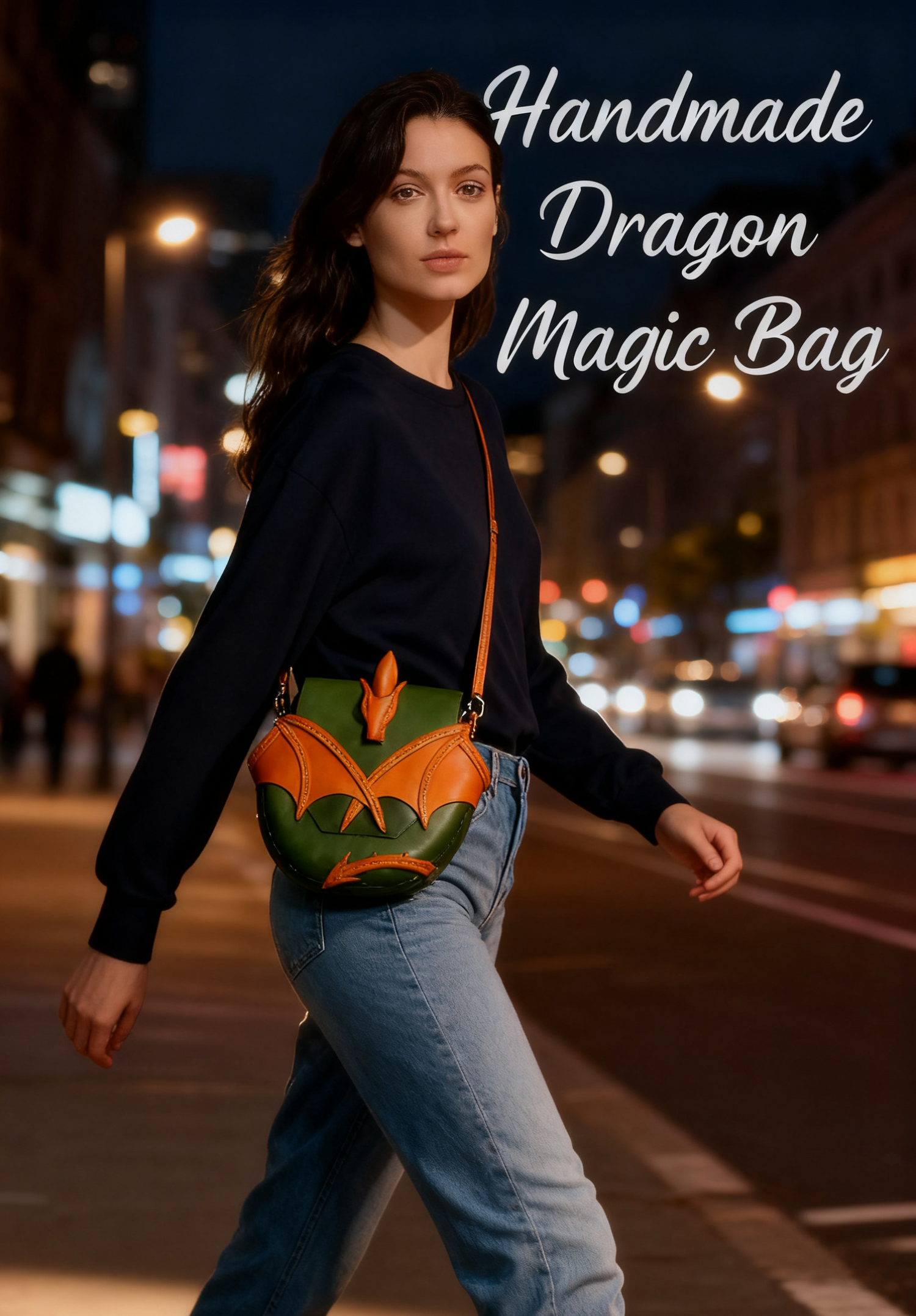 Immerse yourself in a world of fantasy with thisexquisitely handcrafted dragon bag. Every detail, from the dragon’s textured scales (crafted via precision leather tooling) to the dynamically arched wings (reinforced with durable stitching), tells a story of artistry. The dragon’s head serves as both a decorative focal point and a functional element, adding a whimsical yet sophisticated touch. Whether you’re attending a comic-con, a gallery opening, or a casual brunch, this bag is a conversation starter that screams “I dare to be different.”