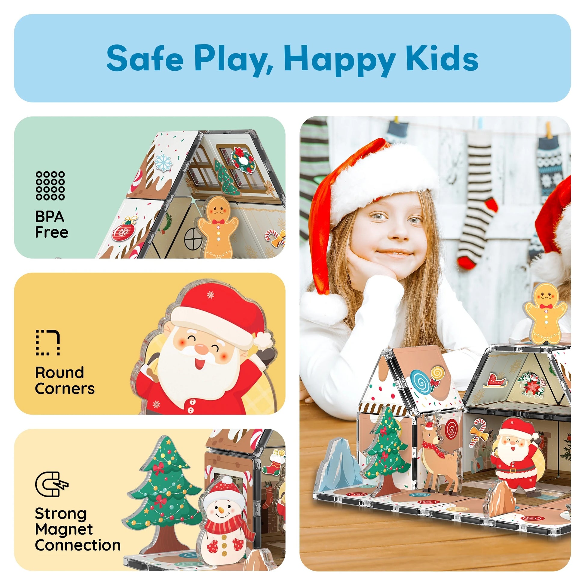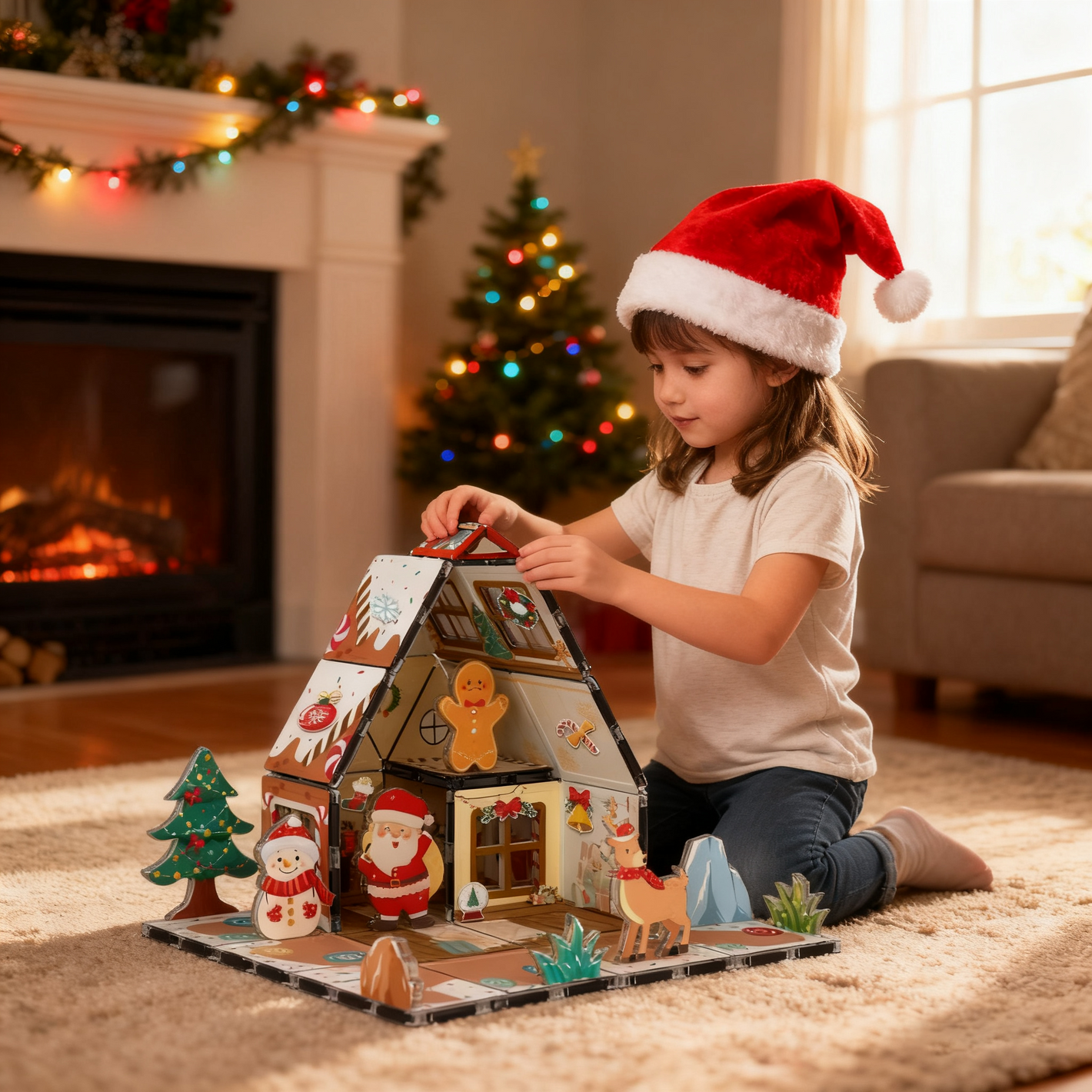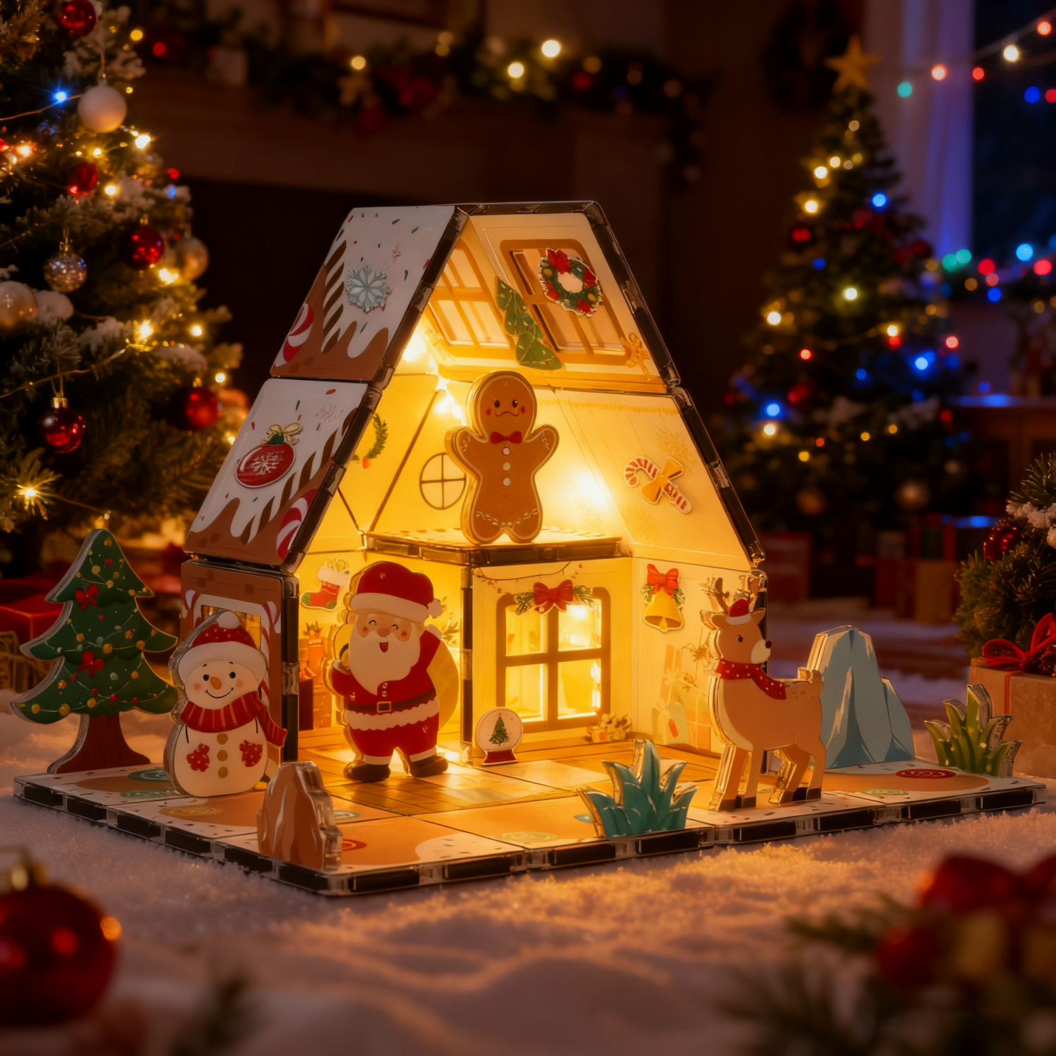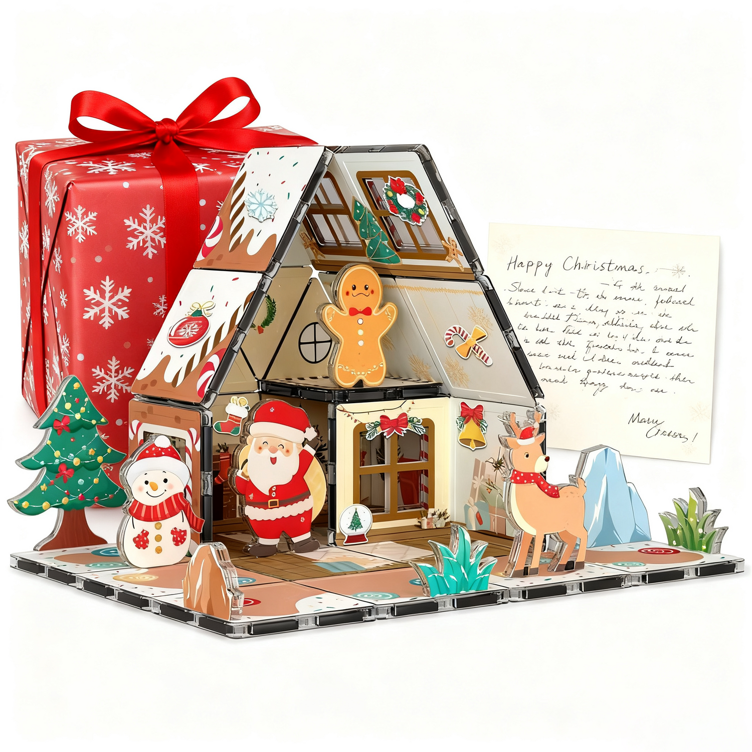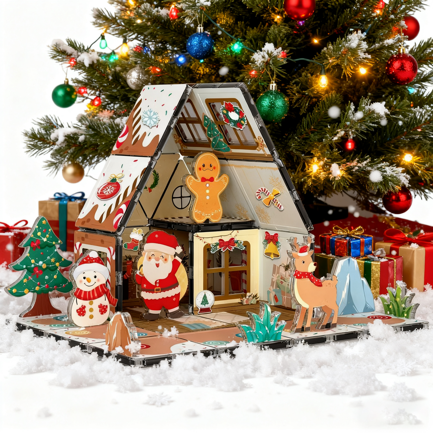 Transform holiday playtime with this magical, mess-free gingerbread house alternative! No sticky icing or crumbly cookies—just colorful magnetic tiles that snap together to build, rebuild, and decorate endless Christmas scenes.