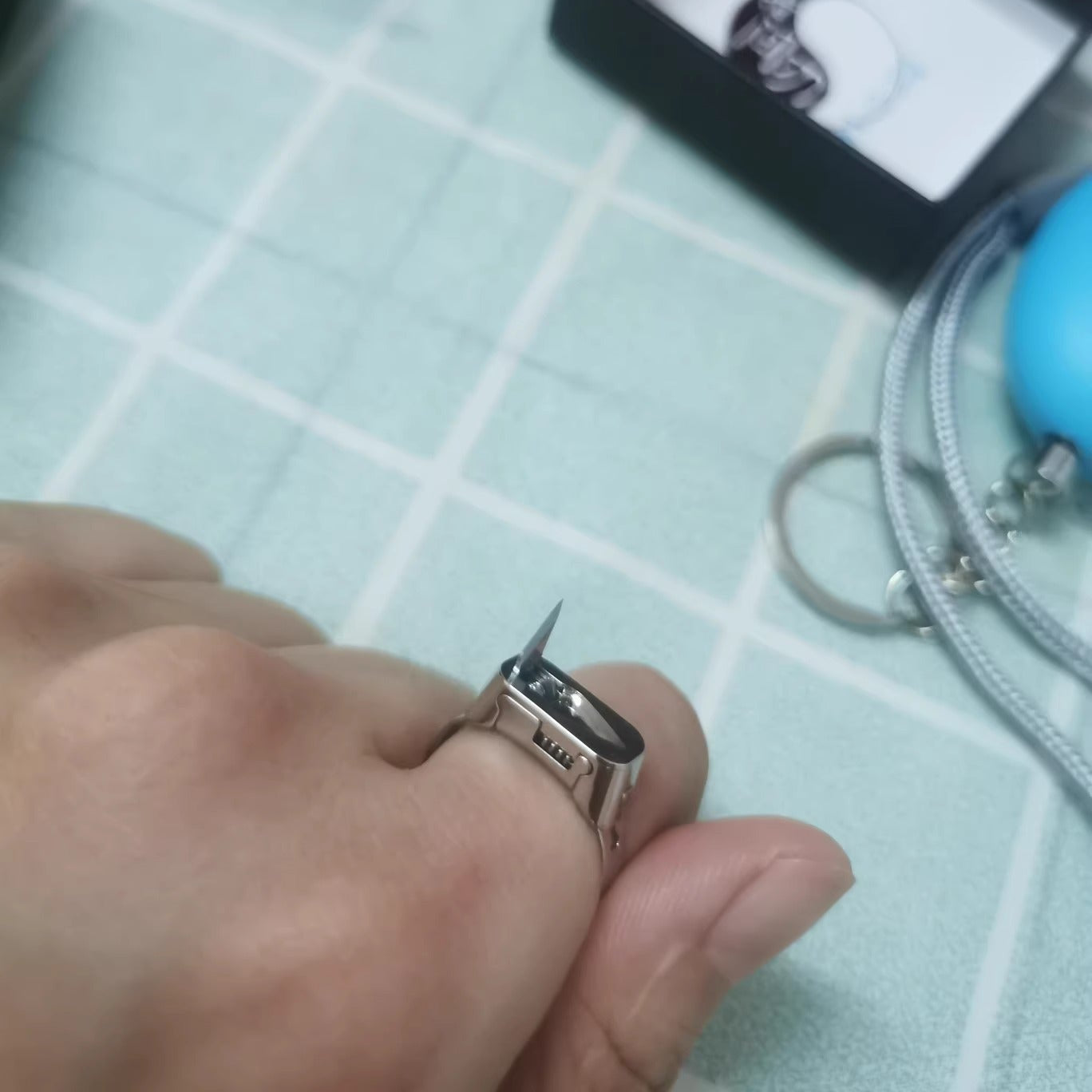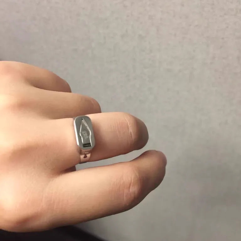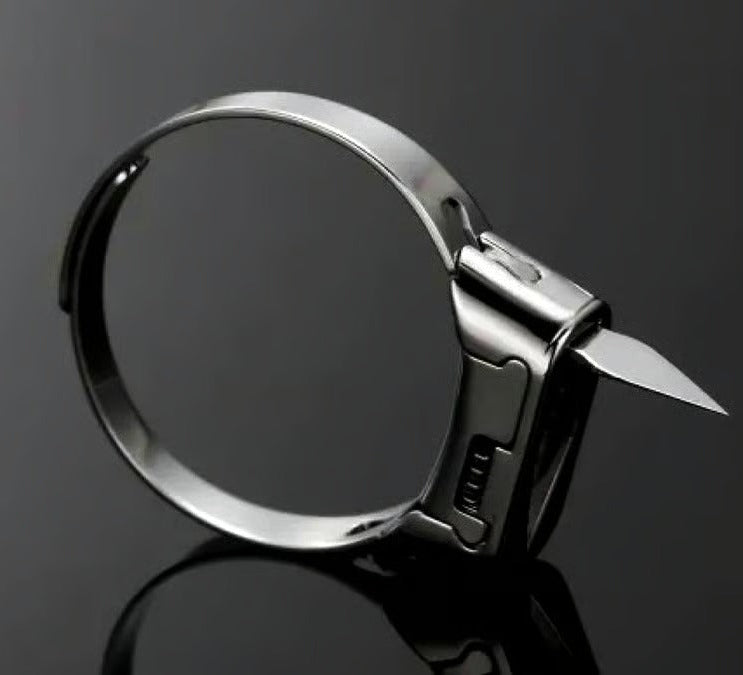 Expertly crafted from durable stainless steel, this innovative ring features a concealed mini blade that folds neatly inside and locks securely in place when not in use.