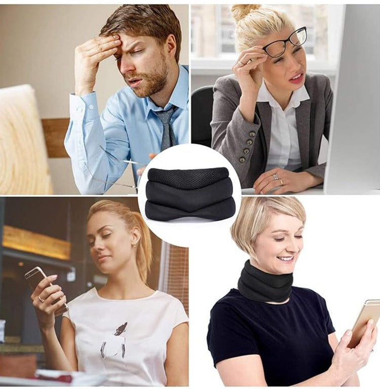It works great for both! For desk use, it keeps your neck aligned (prevents slouching forward) to reduce tension from long hours of typing. For travel, it supports your neck when you lean back to sleep (no more waking up with a stiff neck). Many users also use it while watching TV or reading on the couch—basically any time you need extra neck support.