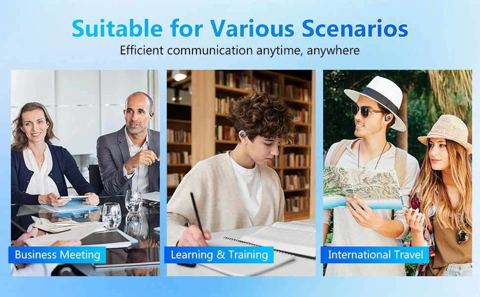 - Dual-Way Communication: Both sides hear clear translations directly in the earbuds—no need to pass a device back and forth.