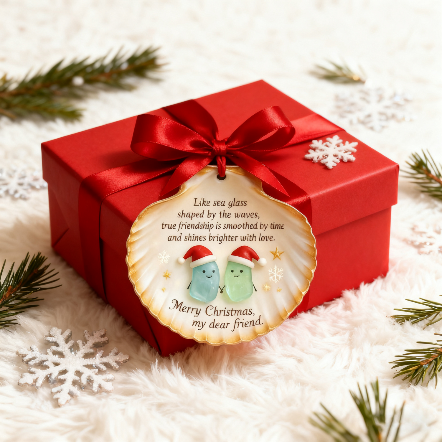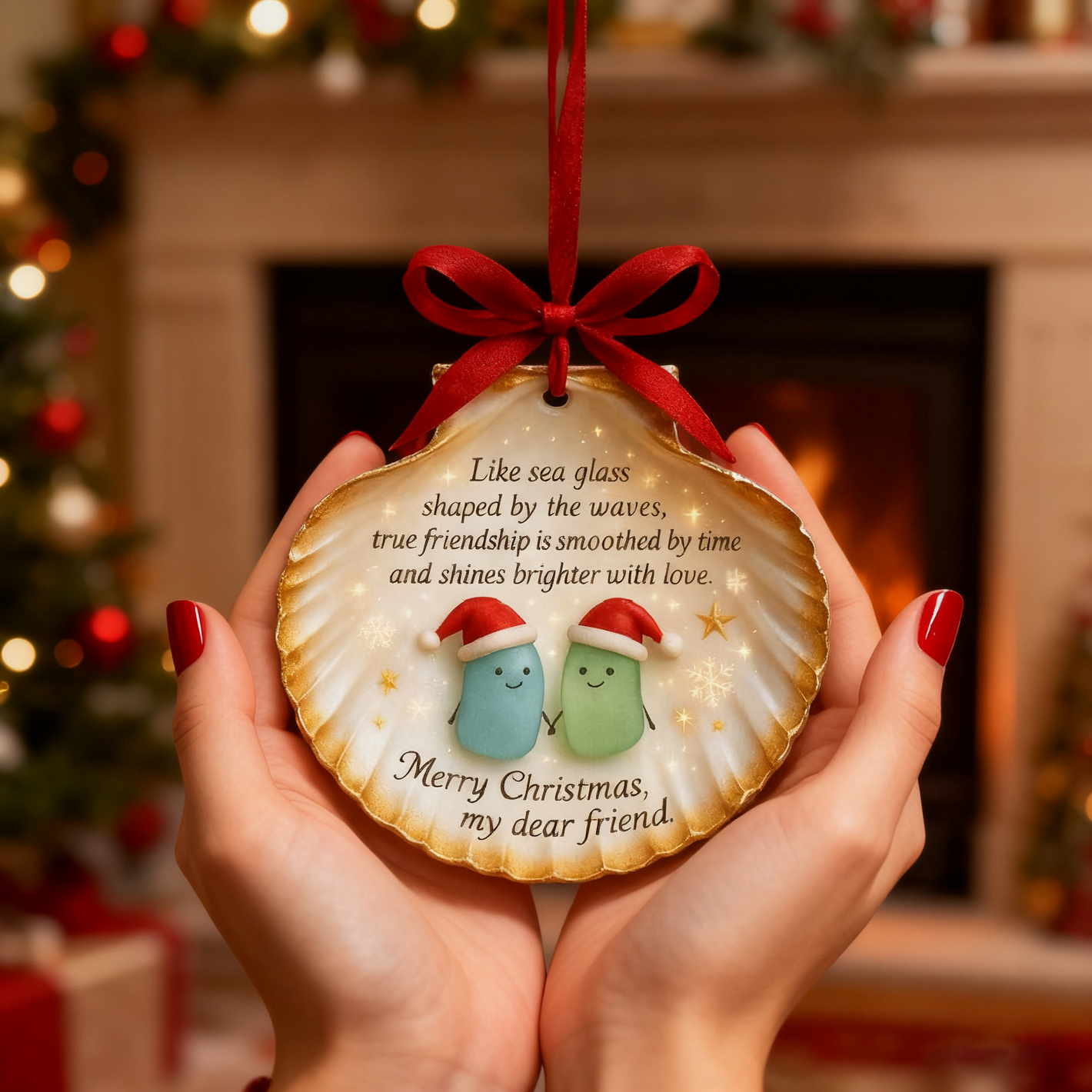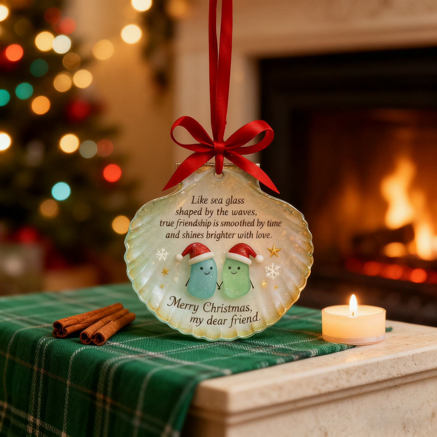 Elevate your Christmas decor and celebrate the beauty of true friendship with our Sea Glass Shell Friendship Ornament—a piece that blends seaside charm, heartfelt sentiment, and festive spirit.