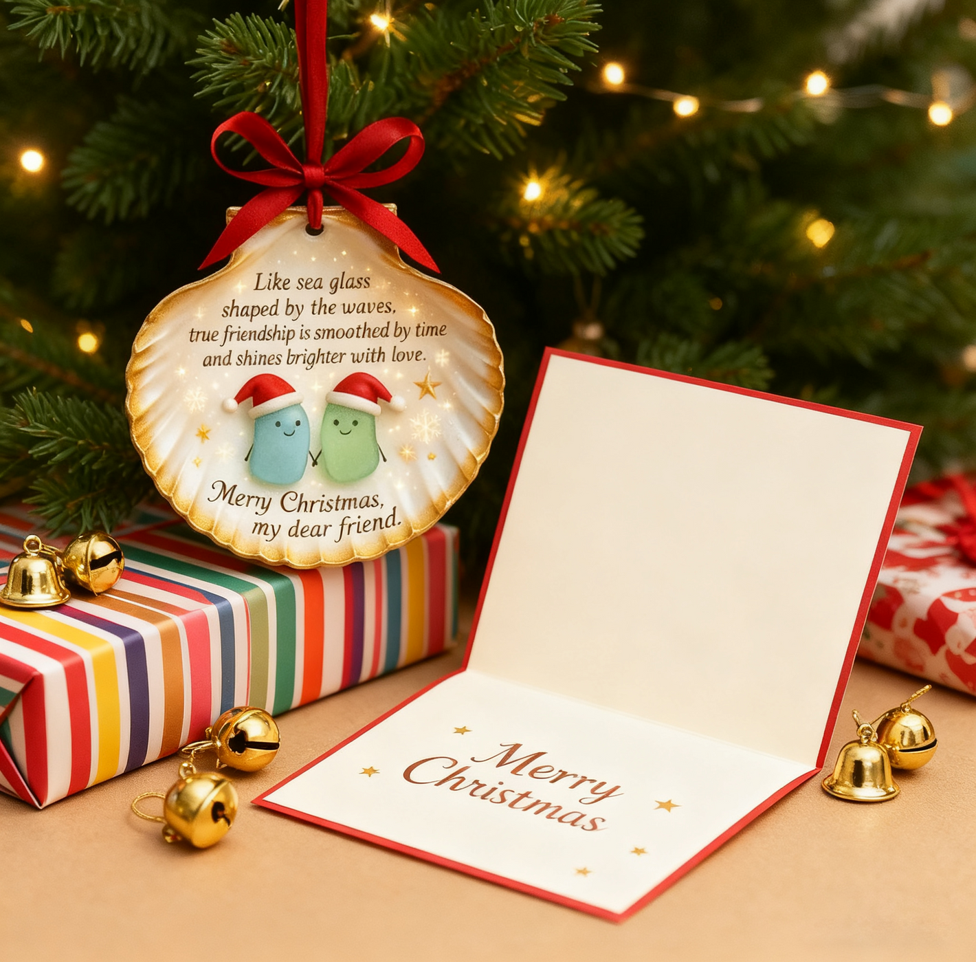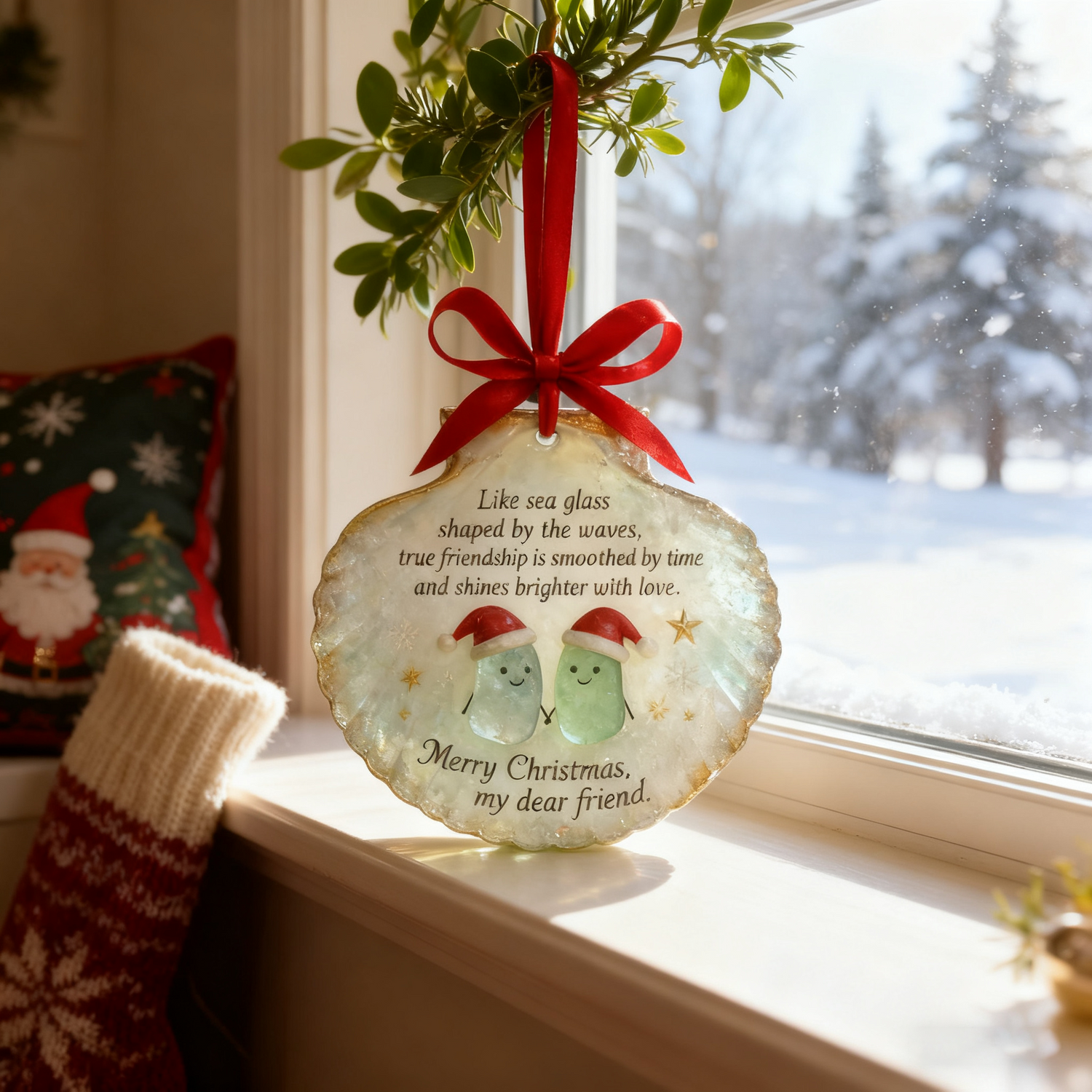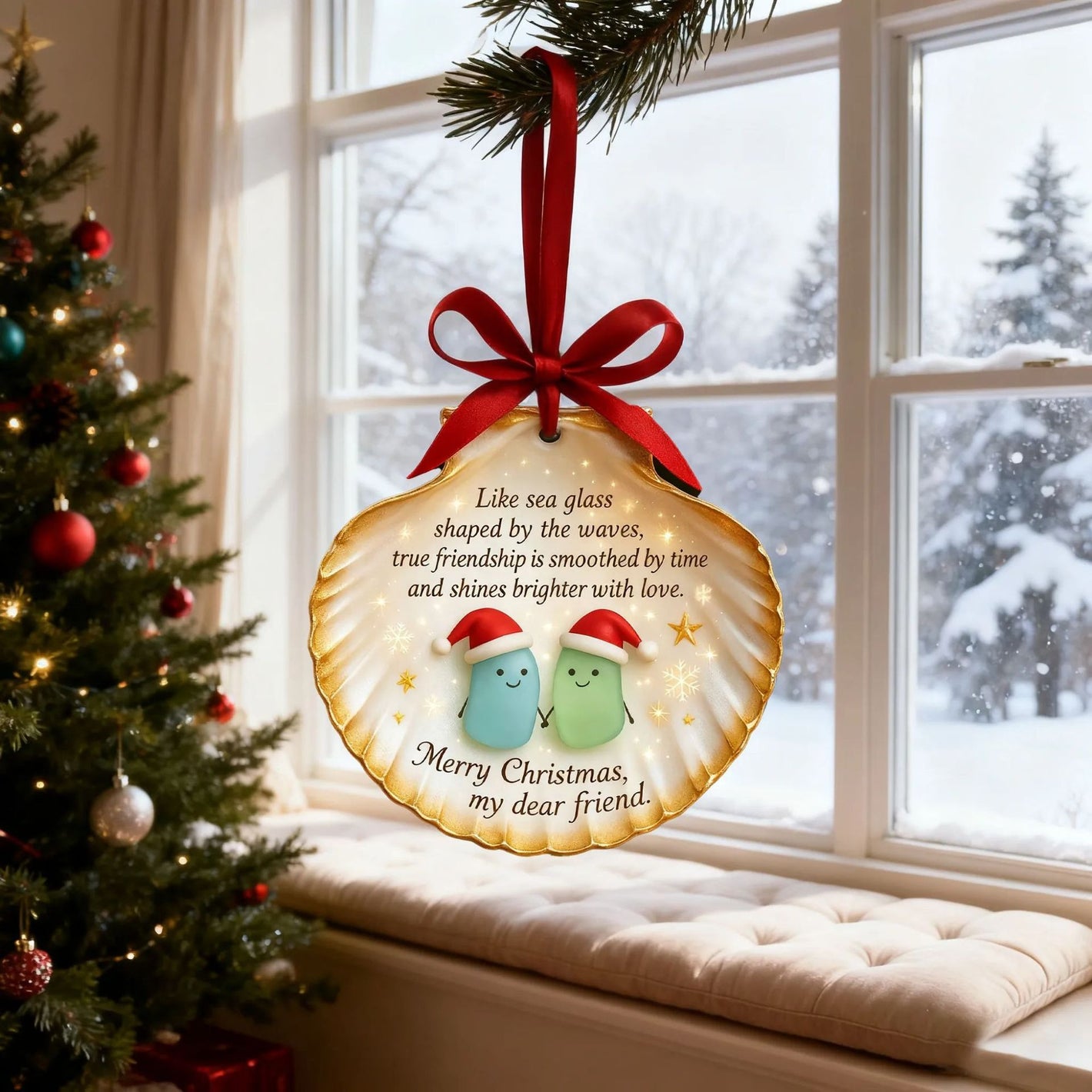 Elevate your Christmas decor and celebrate the beauty of true friendship with our Sea Glass Shell Friendship Ornament—a piece that blends seaside charm, heartfelt sentiment, and festive spirit.