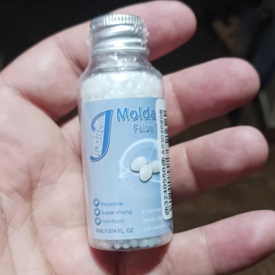 No special tools or equipment are required, and it will not damage your other teeth. Simple and convenient to use. Place the tooth repair granules in hot water to automatically dissolve, make it into a suitable shape, and finally cool. Can also be used for replacement tooth DIY learning models, prototyping, model making.
